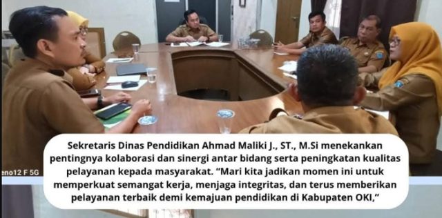 Rangkaian rapat ini menjadi bagian dari upaya berkelanjutan Sekretariat Dinas Pendidikan OKI dalam mendukung visi misi Dinas secara profesional, responsif, dan adaptif terhadap tuntutan pelayanan pendidikan yang semakin kompleks.