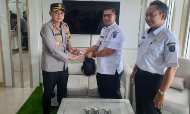 Kapolres OKI Terima Serahan 4 Pucuk Senpira dari Ketua FKKD Kecamatan Mesuji Raya