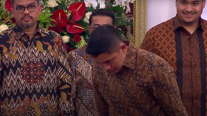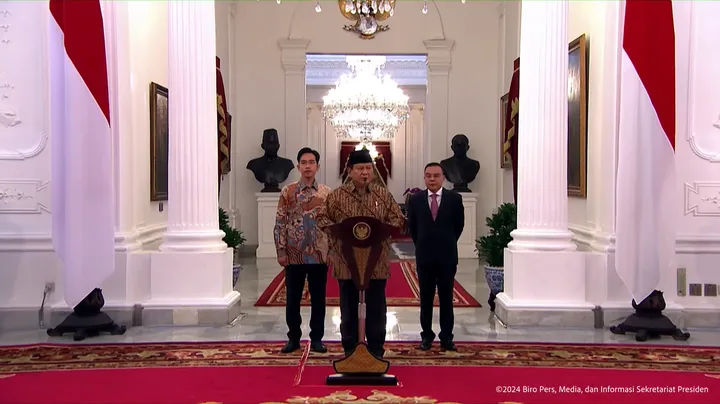 Dalam momen tersebut, Presiden Prabowo tampak didampingi Wakil Presiden Gibran Rakabuming Raka dan Ketua Gugus Tugas Sinkronisasi Prabowo-Gibran, Sufmi Dasco Ahmad.