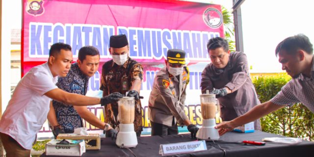 “Sesuai Peraturan Pemerintah Nomor 40 Tahun 2013 terkait pelaksanaan Undang-Undang Nomor 35 Tahun 2009 tentang narkotika, jadi barang bukti yang sudah kami lakukan penyitaan sebanyak 990 butir ekstasi, siang ini dimusnahkan sebanyak 890 butir,” terang Kapolres.
