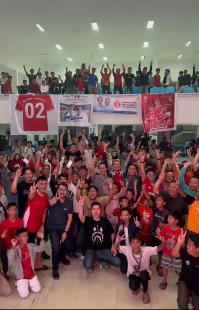 “Nobar pada malam hari ini dihadiri langsung oleh calon Bupati OKI, Muchendi, dengan kemenangan skor 2-0. Hal ini sudah pertanda alam idak pacak dielakan lagi,” ujarnya dengan berbicara bahasa daerah.